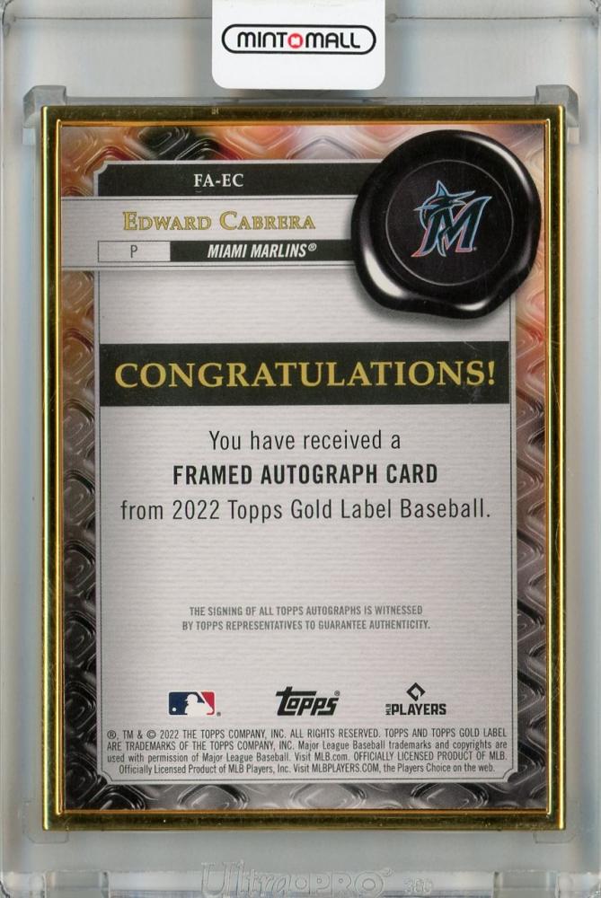 2022 Topps Gold Label Edward Cabrera Framed Autographs #FA-EC RC Miami Marlins