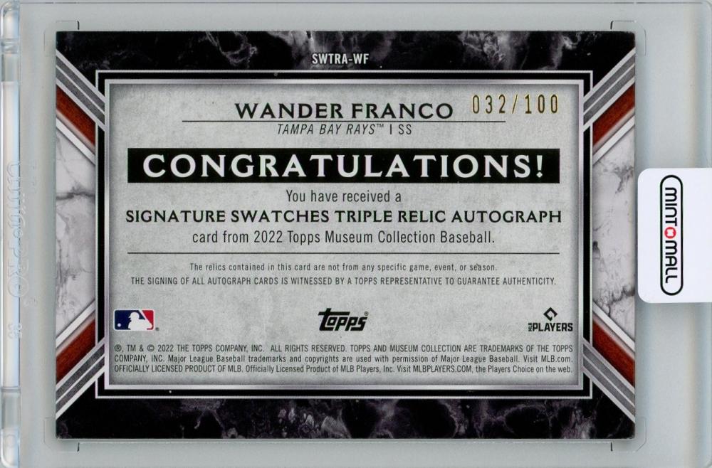2022 Topps Museum Collection Wander Franco #SWTRA-WF Signature Swatches Triple Relic Autograph【32/100】 Tampa Bay Rays ※裏面角にやや劣化ありのため状態要確認