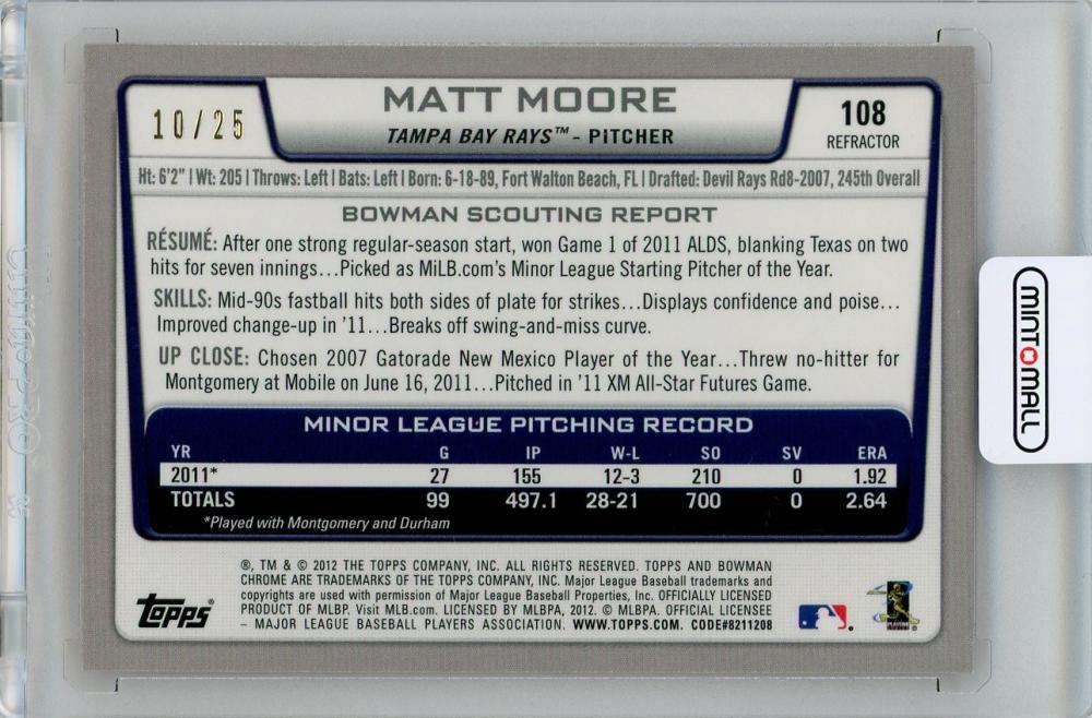 2012 Bowman Chrome Matt Moore #108 Rookie Card Orange Refractor【10/25】 Tampa Bay Rays ※表面に縦傷ありのため状態要確認