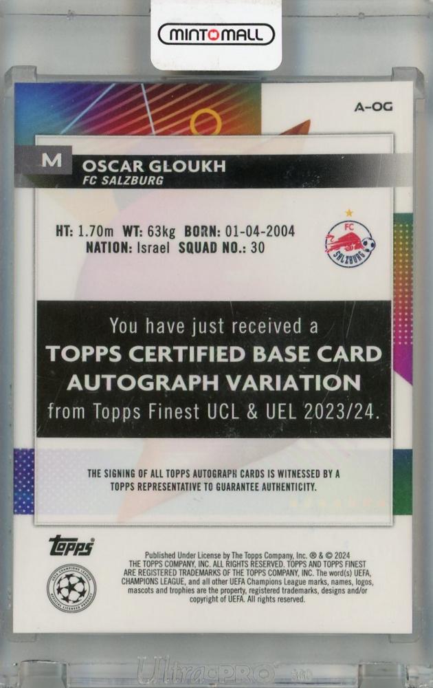 2023-24 Topps Finest UEFA Club Competitions Oscar Gloukh Base Autographs #A-OG RC FC Salzburg