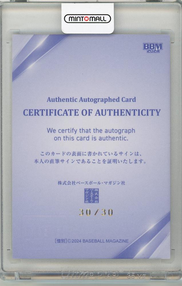 2024 BBM 惜別 中村明彦 直筆サイン【30/30】