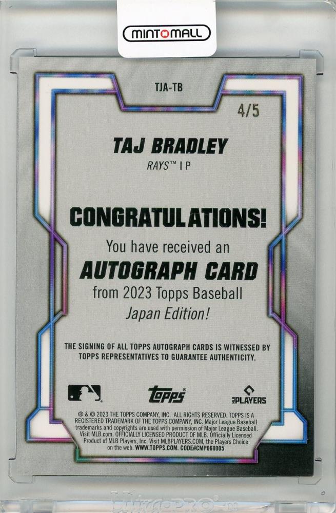 2023 TOPPS Japan Edition Taj Bradley Autographs Red #TJATB【4/5】 Tampa Bay Rays