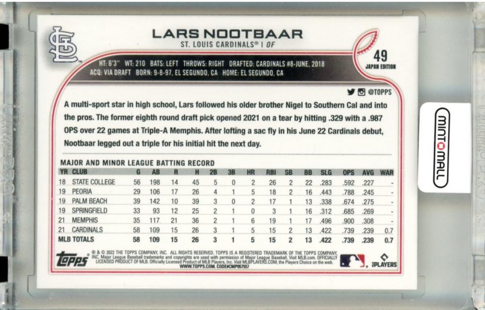 2022 Topps Baseball Japan Edition Lars Nootbaar #49 RC Cardinals