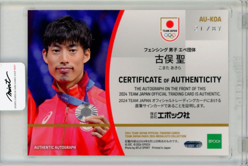 EP TEAM JAPAN PARIS 2024 MEDALISTS COLLECTION オフィシャルトレーディングカード 古俣聖 直筆サインカード シルバー箔 AU-KOA 21/87