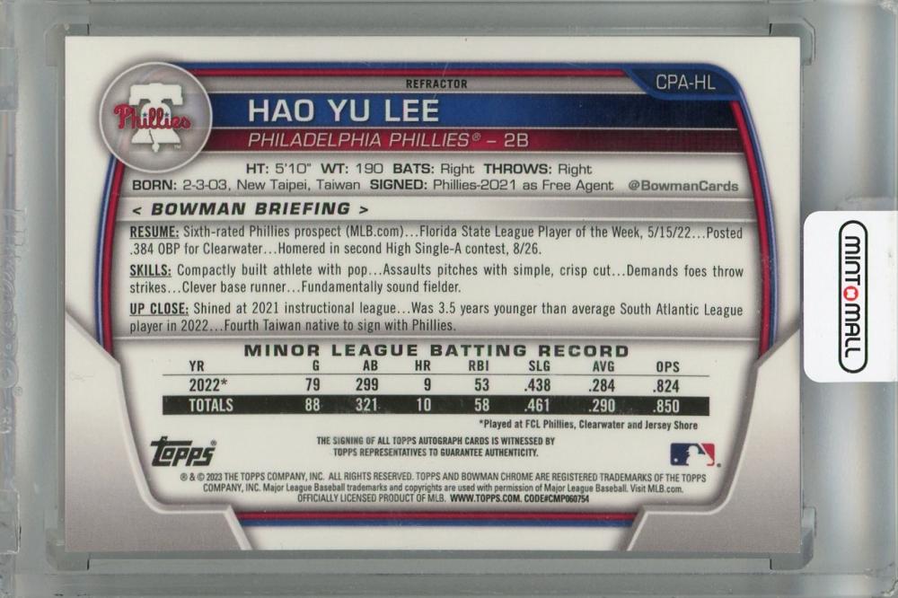 2023 Topps Bowman Hao Yu Lee Chrome Prospect Autographs #CPA-HL 1st Philadelphia Phillies