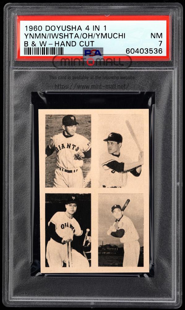 1960 Doyusha 4in1 Kaname Yonamine/Morimichi Iwashita/Sadaharu Oh/Kazuhiro Yamauchi(与那嶺要/王貞治/岩下守道/山内一弘) Black & White Hand Cut【PSA NM 7】