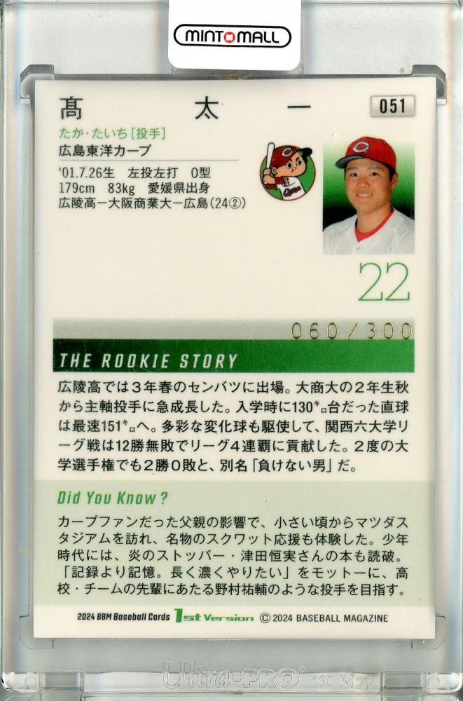 2024 BBM ベースボールカード 1stバージョン 髙 太一 レギュラー ルーキーパラレル 銀紙版【060/300】 広島
