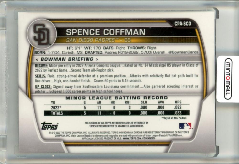 2023 Topps Bowman Chrome Spence Coffman #CPA-SCO Prospect Autographs Padres