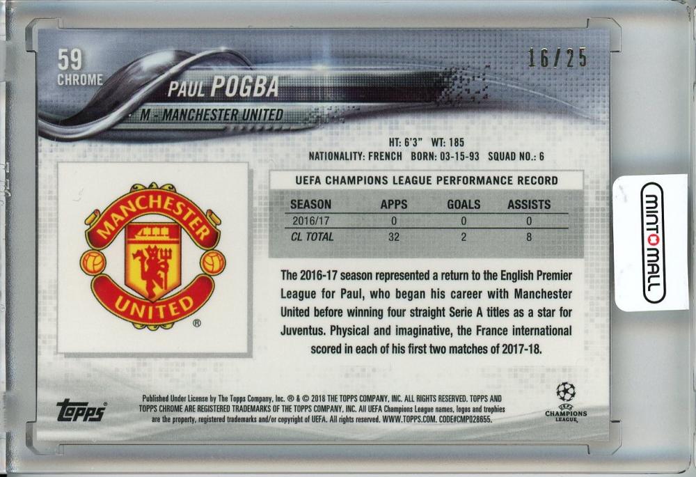 2017-18 Topps Chrome UEFA Champions League Soccer Paul Pogba Base/Orange Refractors/#59【16/25】 Manchester United