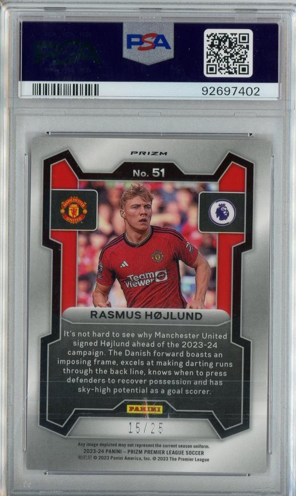 2023-24 Panini Prizm Premier League Soccer Rasmus Hojlund Red Stars Prizms/#51【15/25】【PSA9】 Manchester United