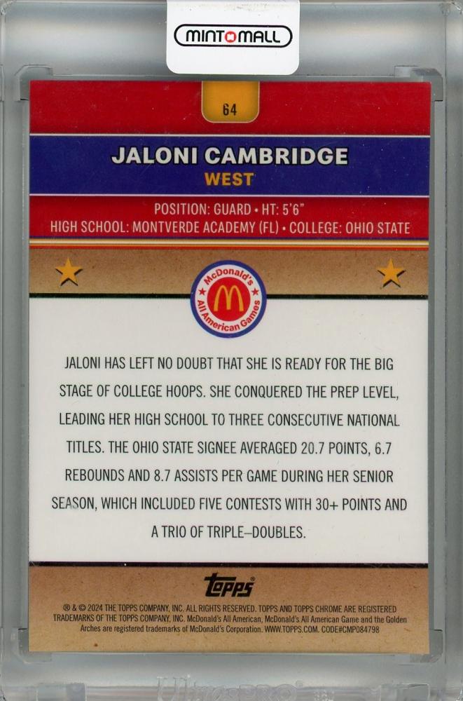2024 Topps Chrome McDonald’s All American Jaloni Cambridge Black Refractor #64 ※初期傷あり【01/10(ファーストナンバー)】 West