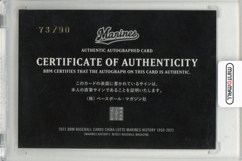 2021 BBM 千葉ロッテマリーンズヒストリー 1950-2021 上川誠二 直筆サインカード【73/90】