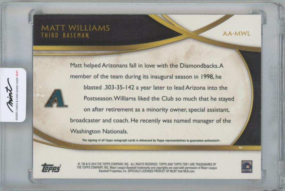 2014 TOPPS Tier One Acclaimed Autographs / MATT WILLIAMS(Arizona Diamondbacks) 【046/299】