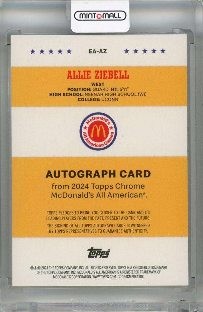 2024 Topps Chrome McDonald’s All American Allie Ziebell Event Autograph #EA-AZ West