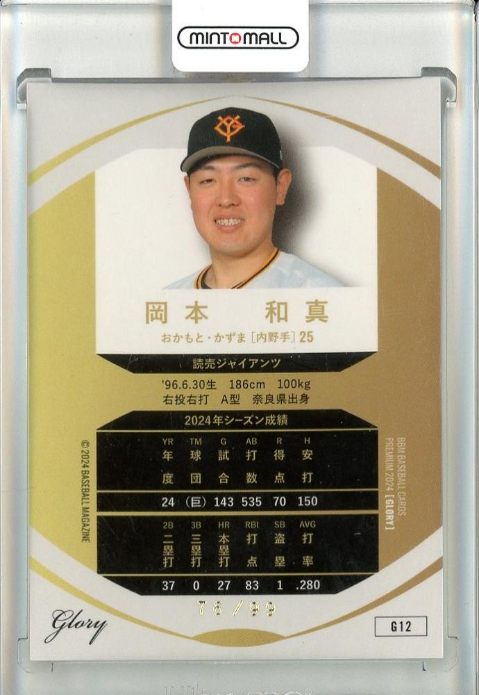 2024 BBM ベースボールカードプレミアム GLORY 岡本和真 レギュラー 金箔版【76/99】 読売ジャイアンツ