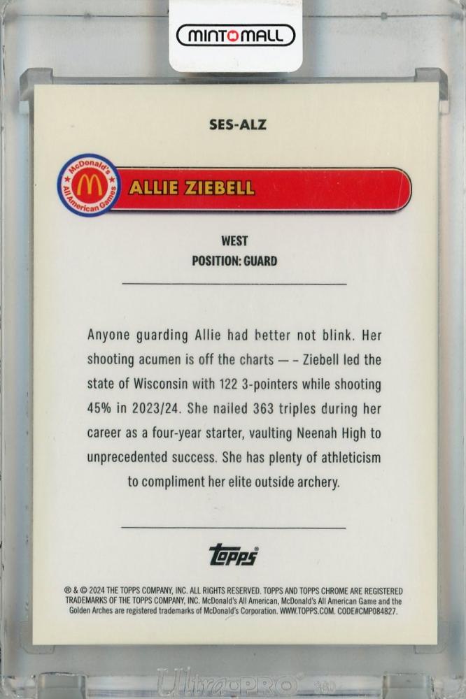 2024 Topps Chrome McDonald’s All American Allie Ziebell Base Action Shots Autographs McDonald’s Logo Refractor #74 ※へ..