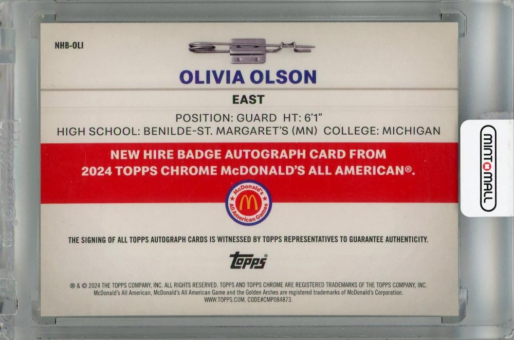 2024 Topps Chrome McDonald’s All American Olivia Olson New Hire Badge Autograph #NHB-OLI East