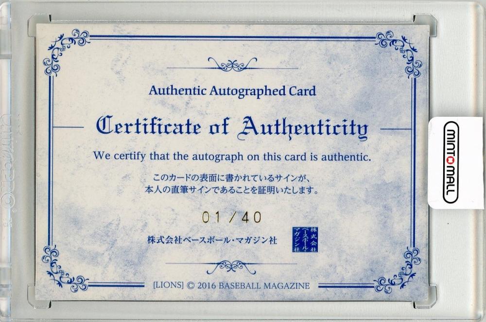 2016 BBM 埼玉西武ライオンズ 十亀剣 直筆サインカード【1st No. 01/40】