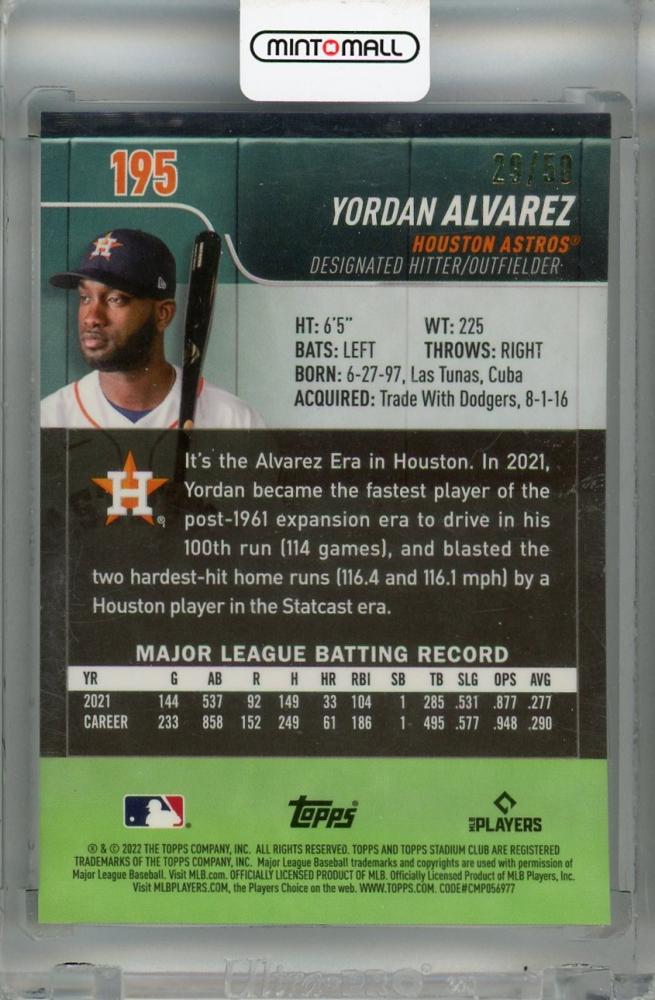 2022 Topps Stadium Club Chrome Yordan Alvarez Gold Refractor #195 ※裏面傷あり【29/50】 Houston Astros