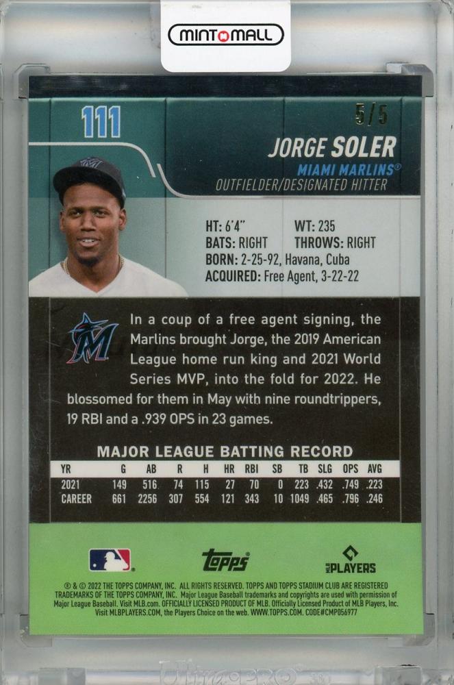 2022 Topps Stadium Club Chrome Jorge Soler Red Refractor #111【5/5(ラストナンバー)】 Miami Marlins