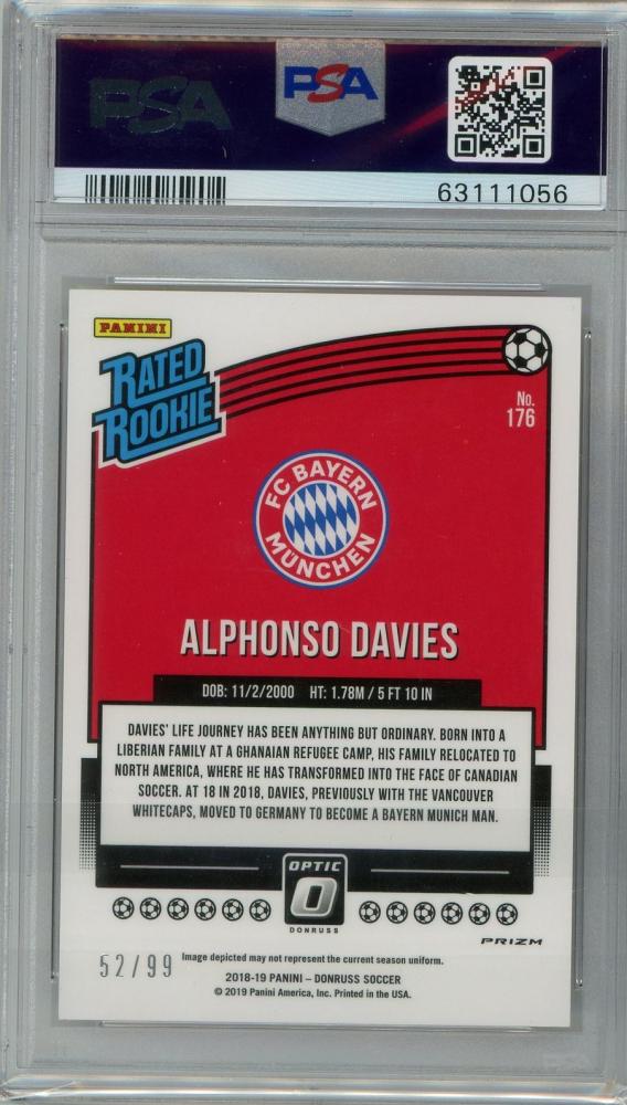 2018-19 Panin Donruss Optic Alphonso Davies Rated Rookie Orange #176【52/99】【PSA9】 FC Bayern Munich