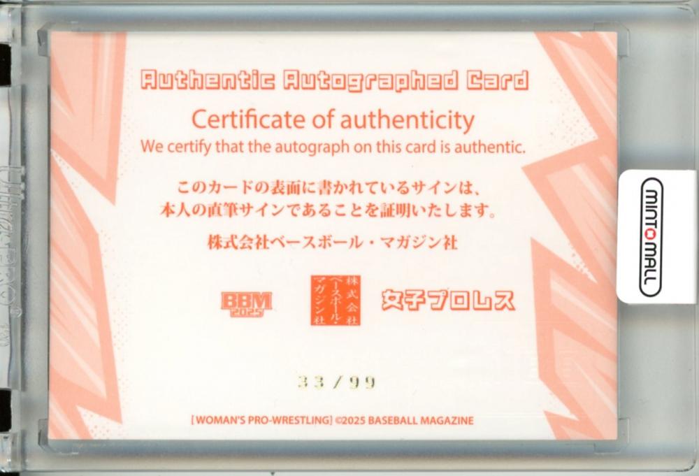 2025 BBM 女子プロレス 柳川澄樺 直筆サインカード【33/99】
