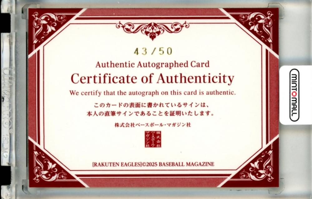 2025 BBM 東北楽天ゴールデンイーグルス 入江大樹 直筆サインカード【43/50】