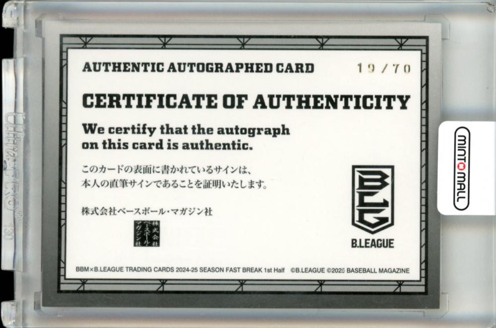 2024-25 BBM B.LEAGUE FAST BREAK 1st Half 田口成浩 直筆サインカード【19/70】