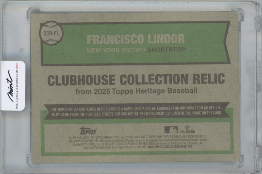 2025 TOPPS Heritage Clubhouse Collection Relics / FRANCISCO LINDOR(New York Mets)