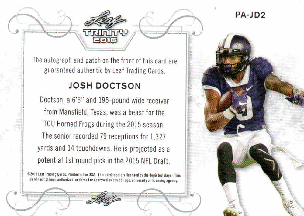 2016 LEAF Trinity Josh Doctson Autograph & Player Worn Patch 10/25