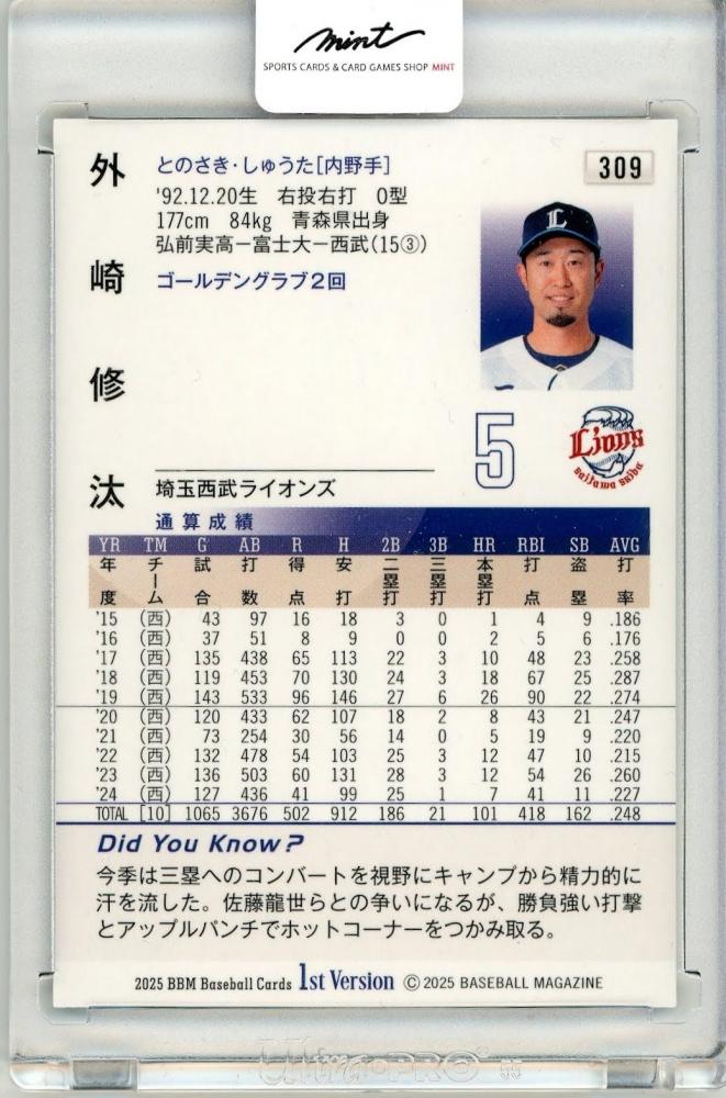 2025 BBM 1st バージョン 外崎修汰 309 スーパーウルトラシークレット版 埼玉西武ライオンズ