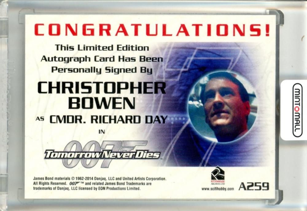 2015 Rittenhouse James Bond Archives Christopher Bowen as Cmor.Richard Day #A259 Autographs