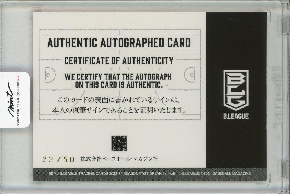 BBM2023-24 B.LEAGUE FAST BREAK 1st Half 中村 拓人 直筆サインカード 22/50