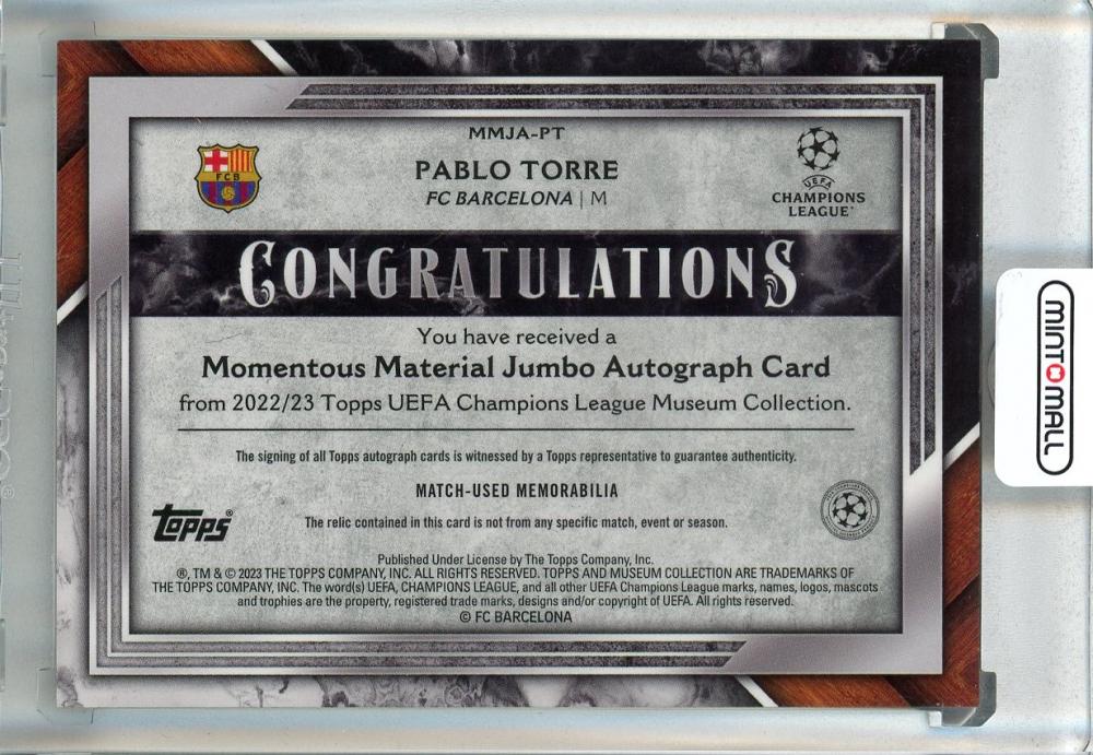 2022-23 Topps Museum Collection UEFA Champions League Pablo Torre Momentus Material Jumbo Autographs #MMJAPT【131/199】 FC Barcelona