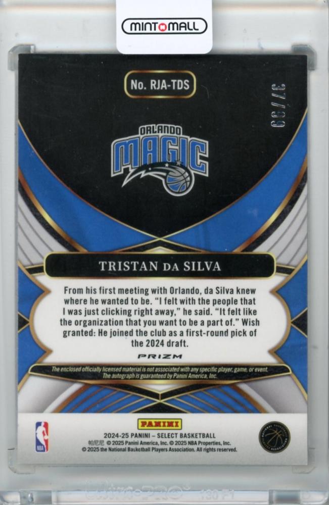 2024-25 Panini Select Tristan Da Silva #RJA-TDS Rookie Jersey Autograph Purple Prizm Parallel【37/99】 Magic