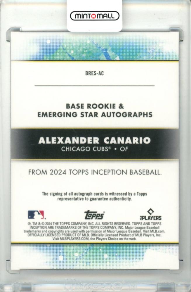 2024 Topps Inception Alexander Canario #BRES-AC Base Rookie and Emerging Star Autographs Purple Parallel【147/199】 Cubs