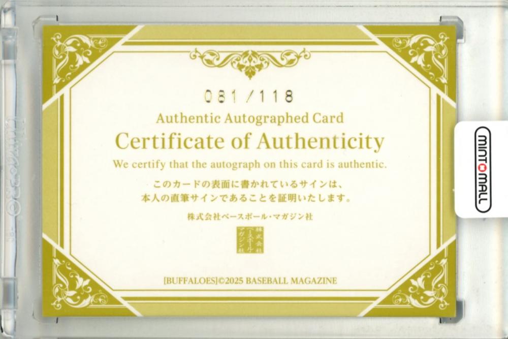 2025 BBM オリックス・バファローズ 福永奨 直筆サインカード【081/118】