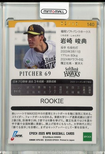 EPOCH パシフィック・リーグ ルーキーカードセット 2025 岩崎峻典 直筆サインカード【03/10】 福岡ソフトバンクホークス