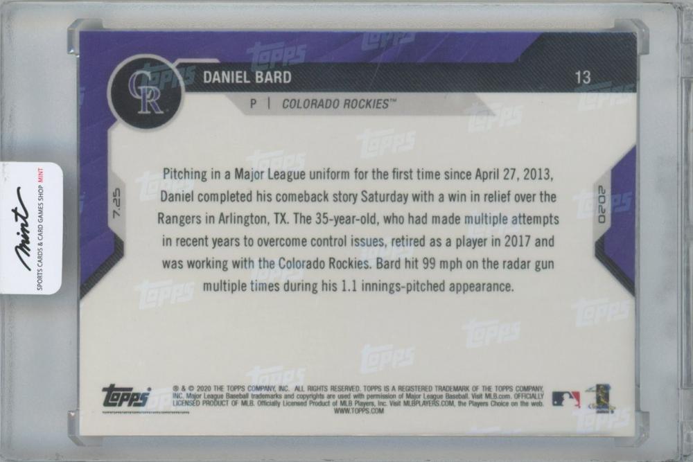 2020 TOPPS Now Orange #13 / DANIEL BARD(Colorado Rockies) 【5/5】