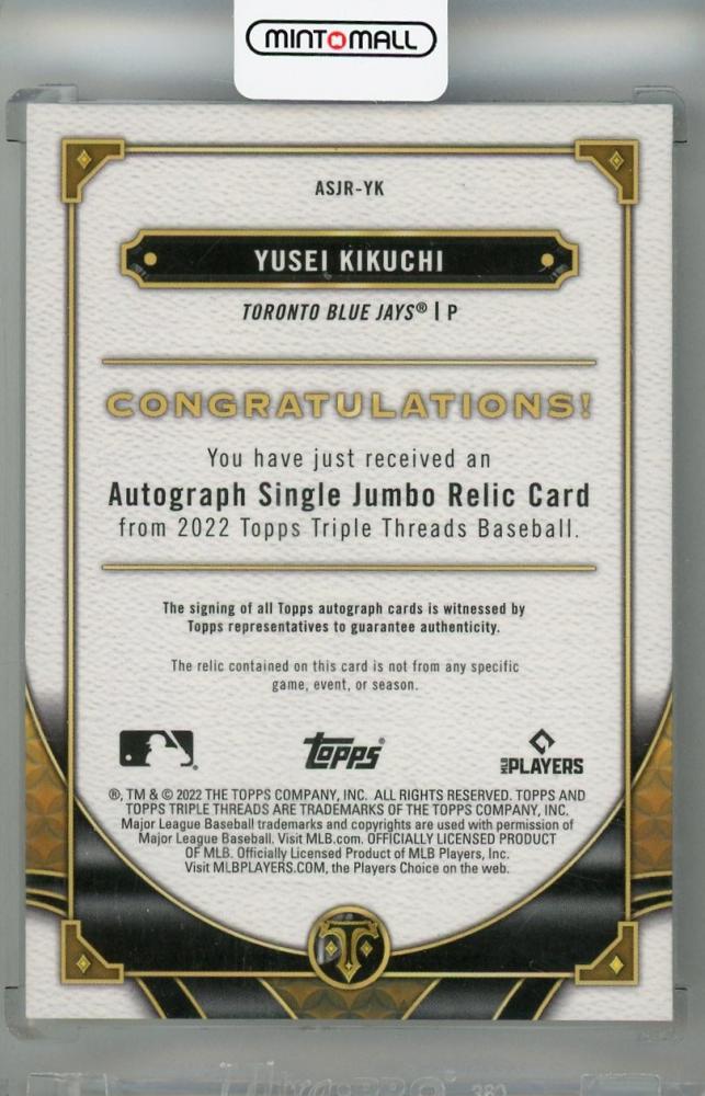 2022 Topps Triple Threads Yusei Kikuchi Jersey Autographs #ASJR-YK【72/99】 Toronto Blue Jays
