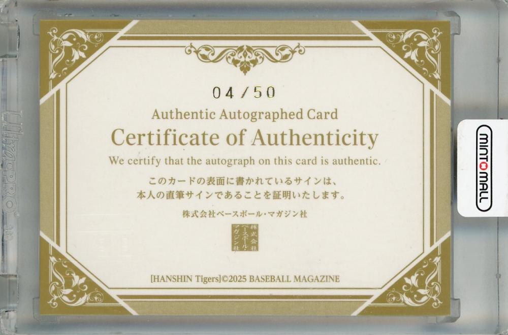 2025 BBM 阪神タイガース 佐野大陽 直筆サインカード (RC)【04/50】