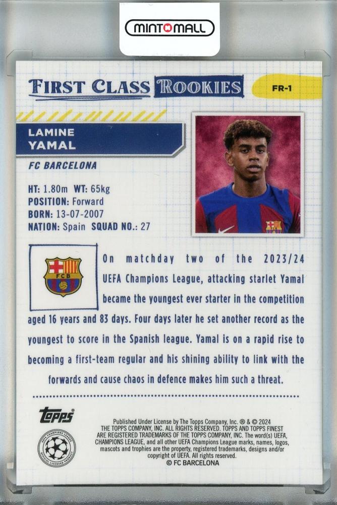 2023-24 Topps Finest UEFA Club Competitions Lamine Yamal Finest First Class Rookies Refractors/#FR-1 FC Barcelona