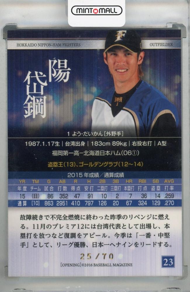 2016 BBM 北海道日本ハムファイターズ Autographed Edition OPENING 陽岱鋼 青箔サイン版【25/70】