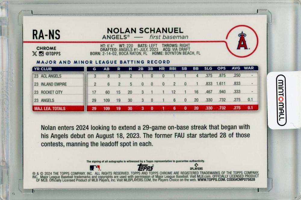 2024 TOPPS Chrome Nolan Schanuel Rookie Autographs Aqua Wave Refractors #RANS【039/199】 Los Angeles Angels