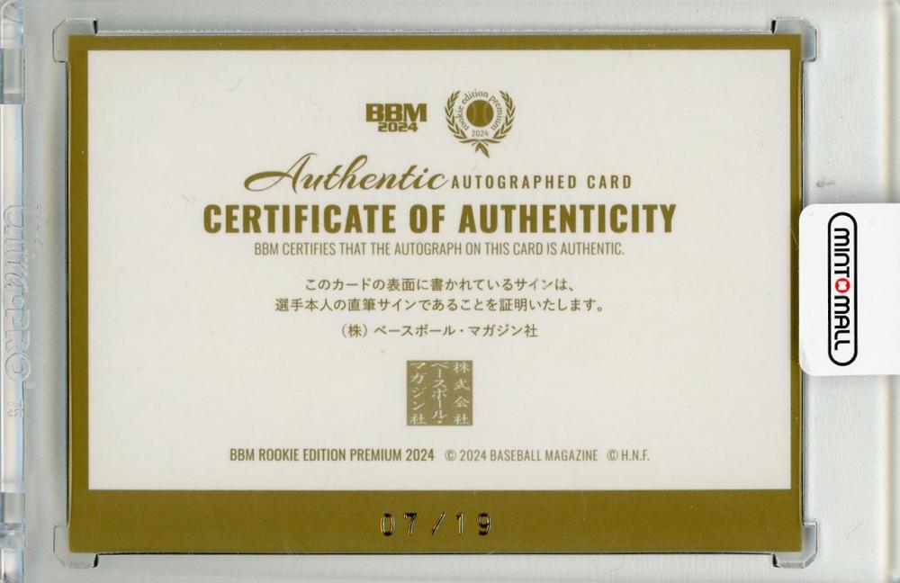 2024 BBM ルーキーエディション プレミアム 細野晴希 直筆サインカード 横版【07/19】 北海道日本ハムファイターズ