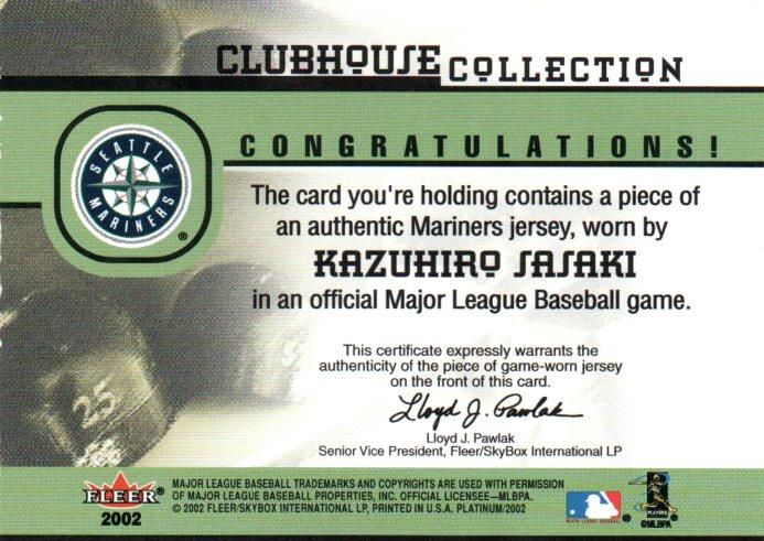2002 FLEER Platinum Kazuhiro Sasaki Game Worn Jersey