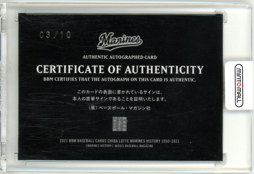 2021 BBM 千葉ロッテマリーンズ ヒストリー 1950-2021 角中勝也 直筆サインカード【03/10】