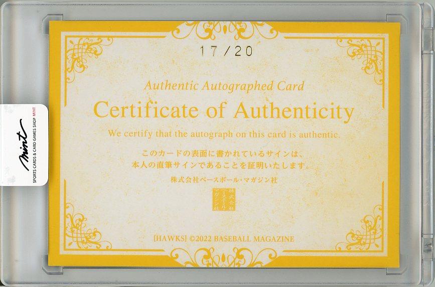 2022 BBM 福岡ソフトバンクホークス 柳田悠岐 直筆サインカード【17/20】