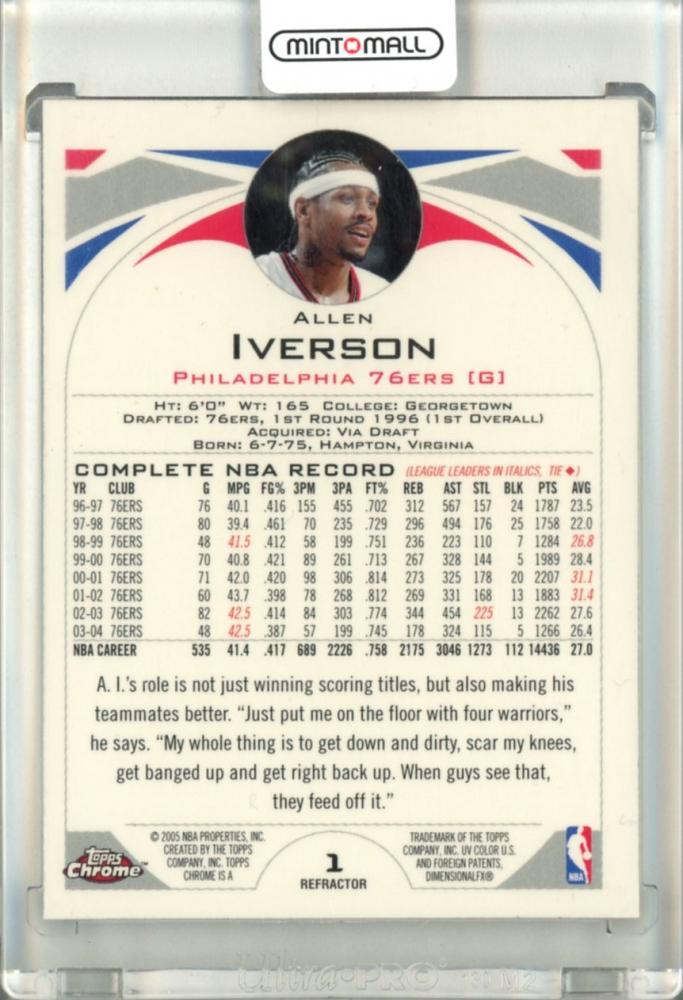 2004-05 Topps Chrome Allen Iverson Refractors #1 Philadelphia 76ers