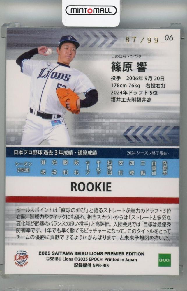 2025 EPOCH 埼玉西武ライオンズ PREMIER EDITION 篠原響 REGULAR FOIL SIGNATURE シルバー版【87/99】
